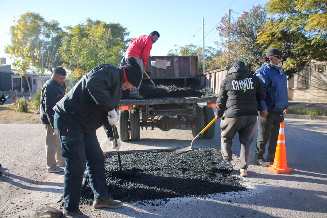 Para mejorar la transitabilidad vehicular, equipos de Conservación Vial llevaron a cabo tareas de bacheo y mantenimiento de calles en el Barrio Néstor Kirchner.